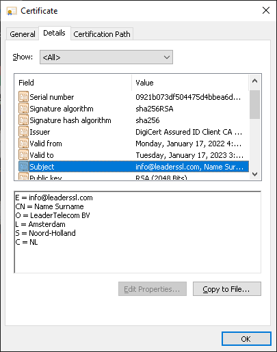 Cene certifikatov LeaderTelecom Digicert Secure Email (SMIME) za Podjetja